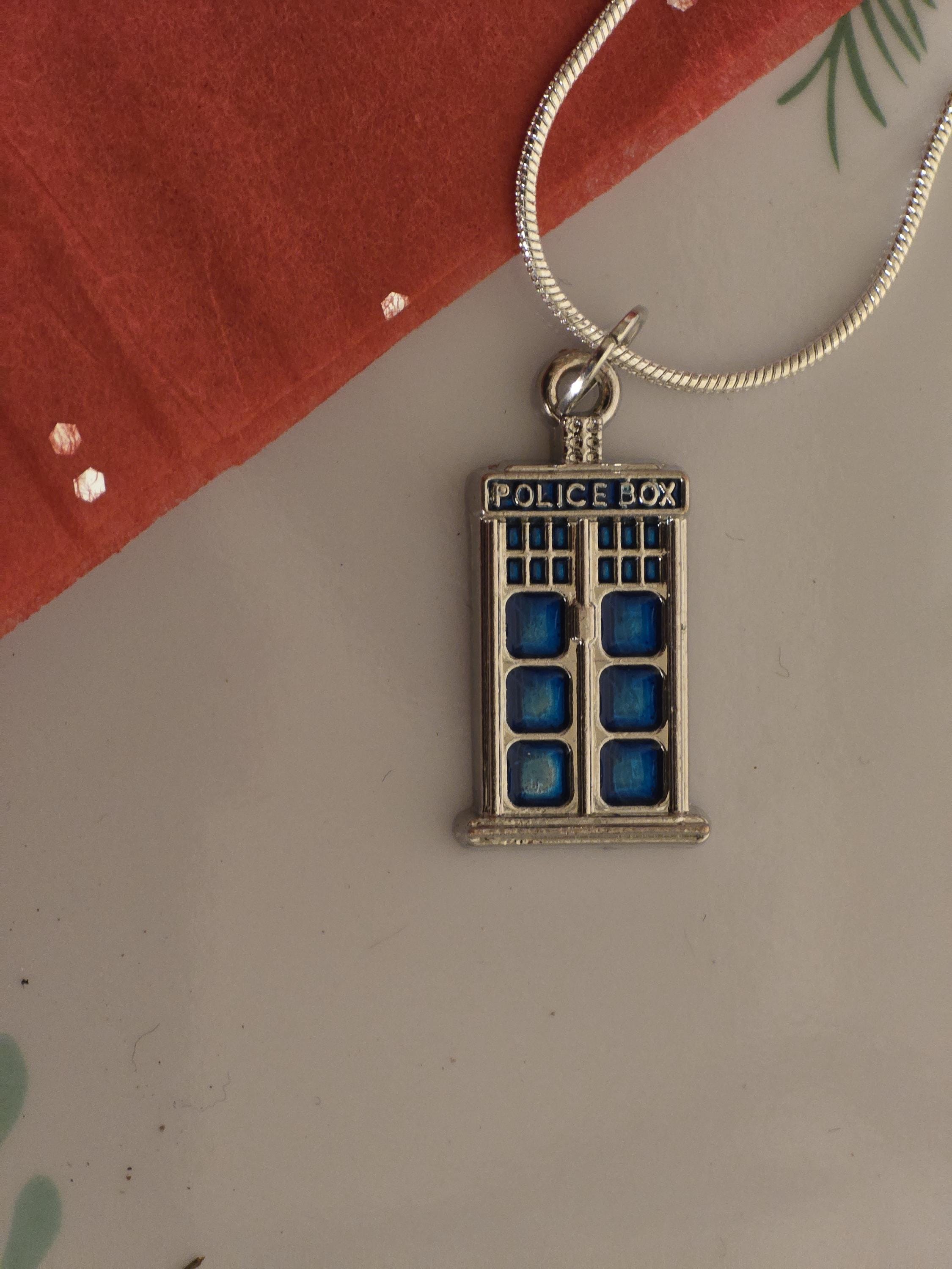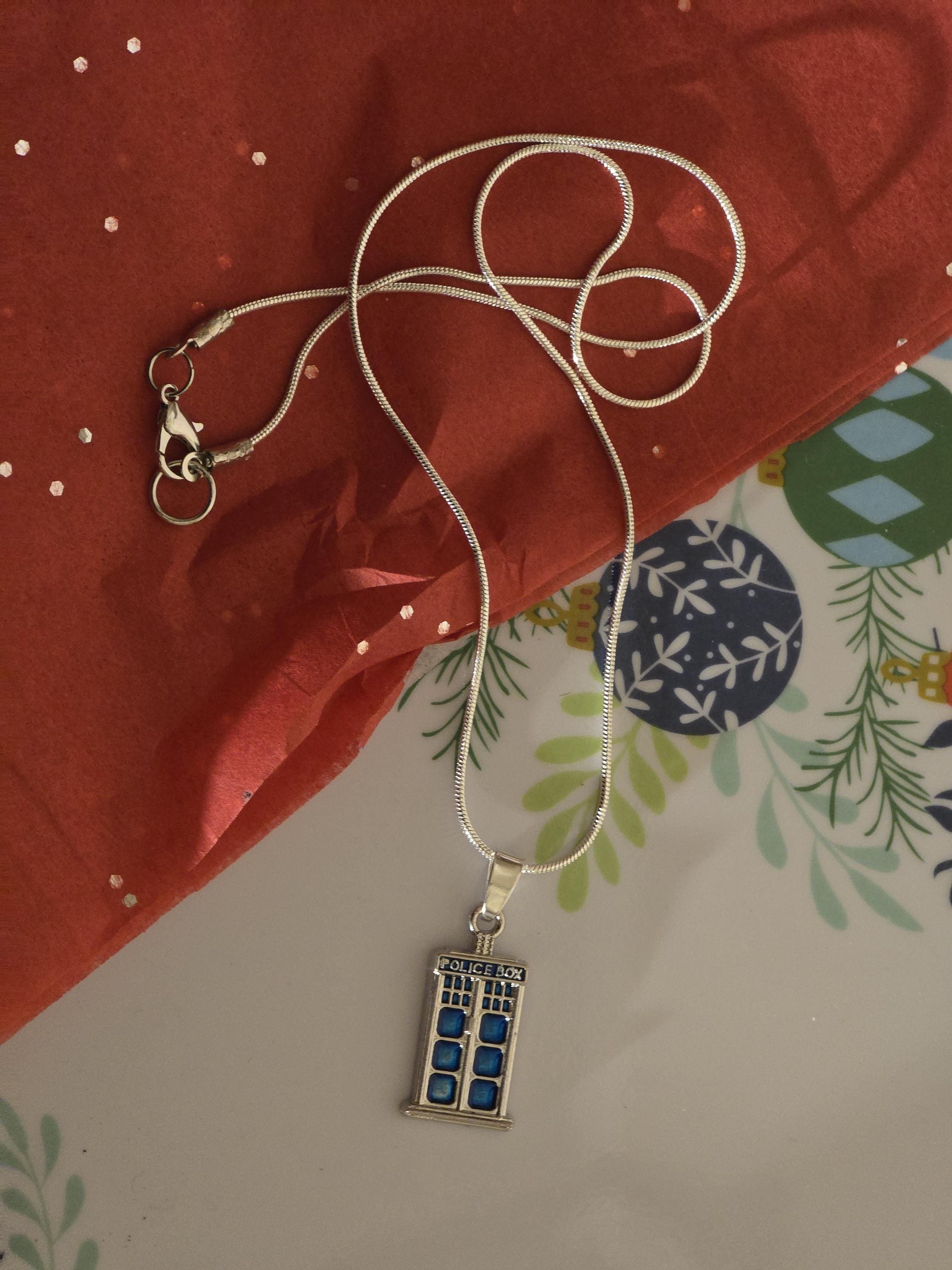 Embrace your inner Whovian with this stunning Doctor Who Necklace inspired! Crafted in a beautiful blue and silver design, this police box charm is a must-have for any fan. Perfect for adding a touch of Time Lord style to your everyday look or as a thoughtful gift for a fellow companion. Get your hands on this unique piece of sci-fi jewelry today!