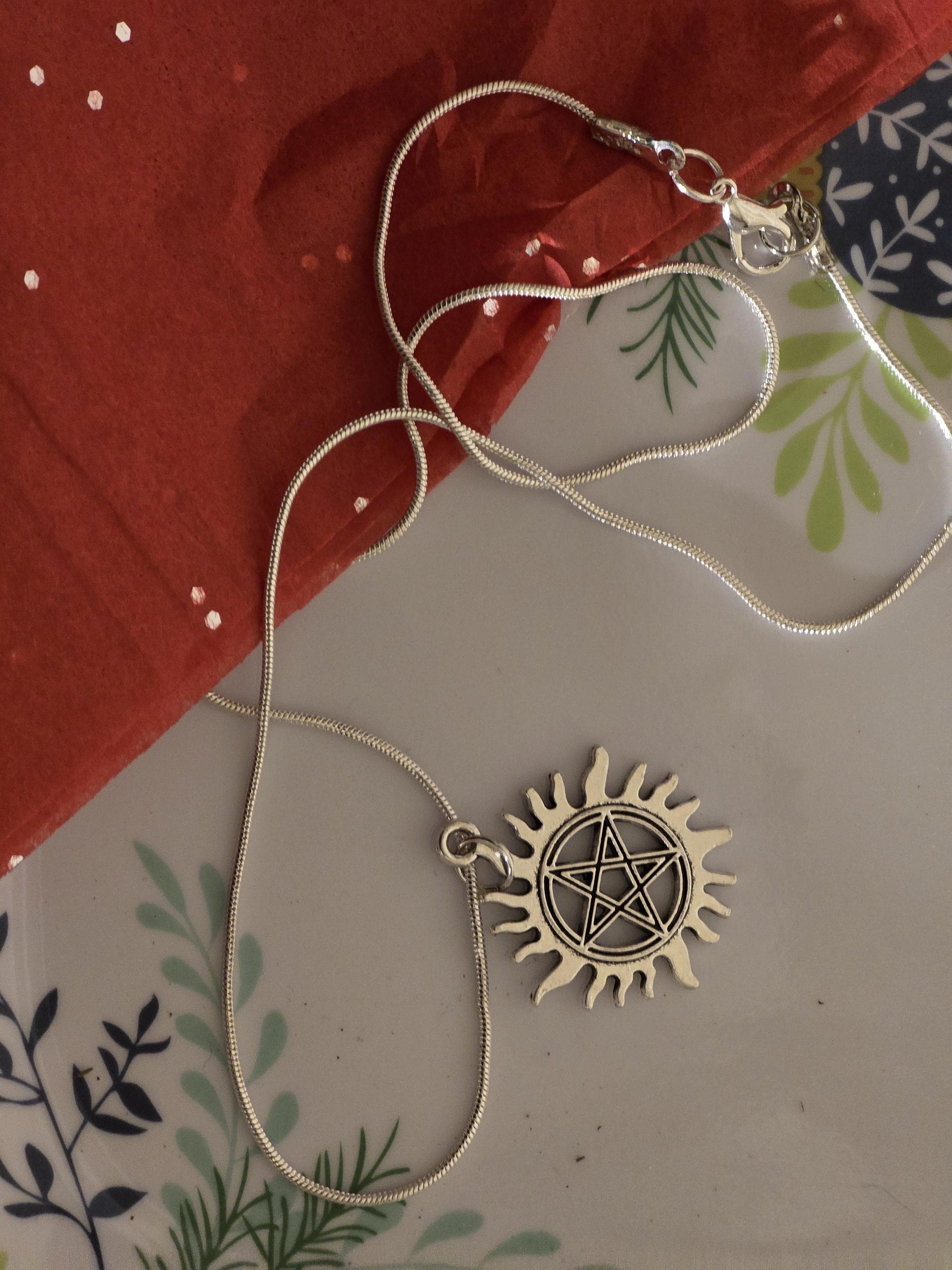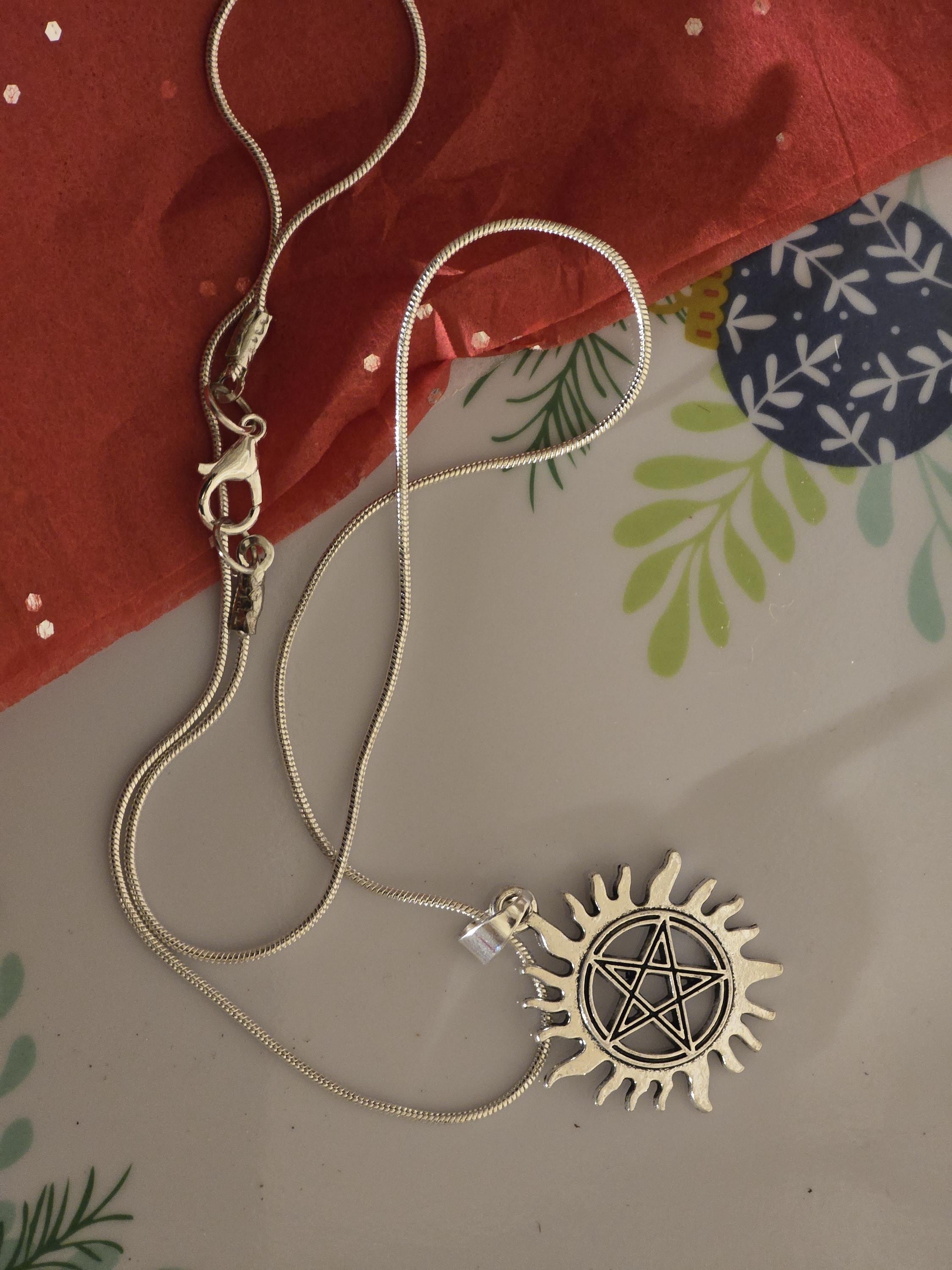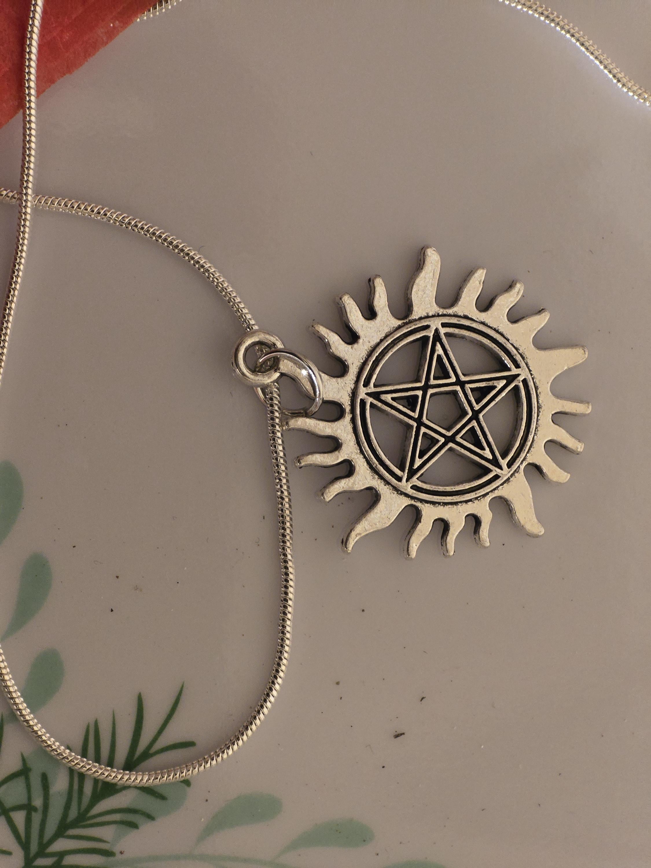 This Supernatural Inspired Anti-Demon Possession Charm offers reliable protection with its intricately designed pendant, featuring symbolic engravings visible in the listing image. Crafted for both aesthetic appeal and functional defense, this unique jewelry piece sets itself apart by combining cultural symbolism with durable materials.