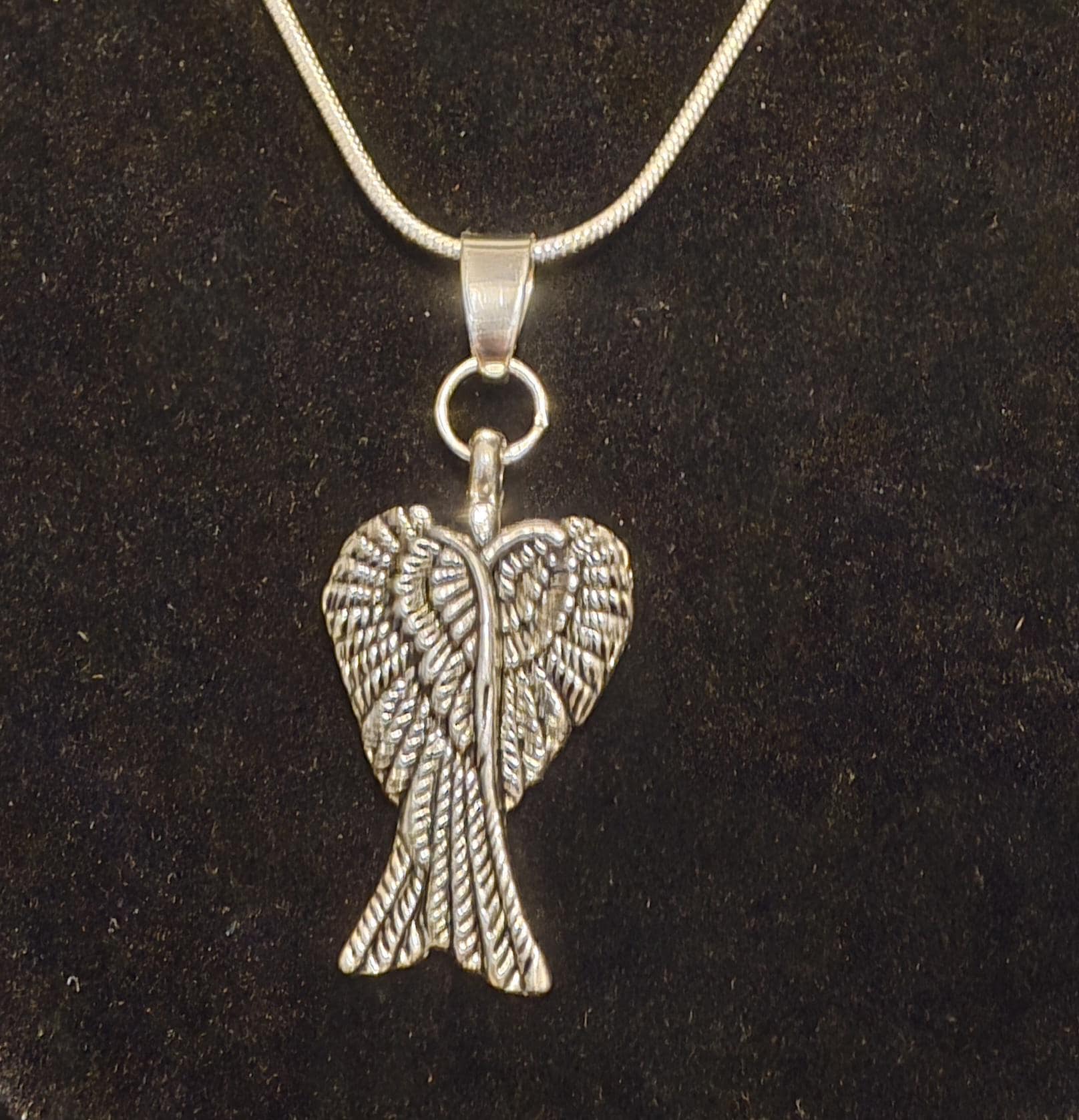 Wearing this pendant invites a personal connection for protection, having an angel by your side.